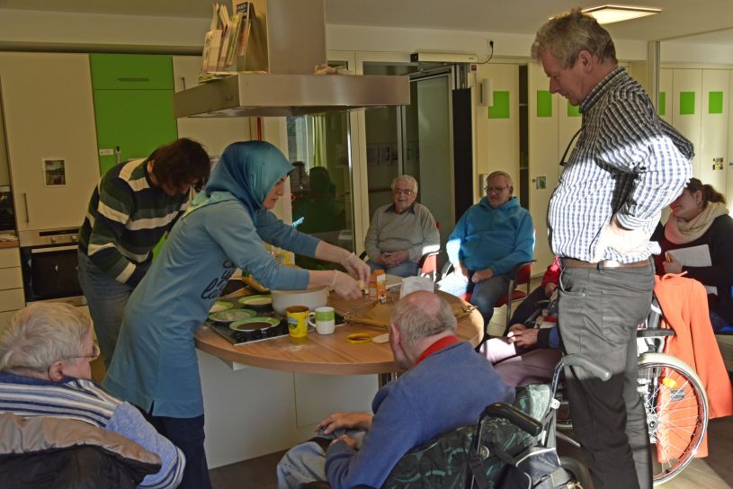 Bewohnerinnen und Bewohnern ein türkisches Gebäck backen, gemeinsam