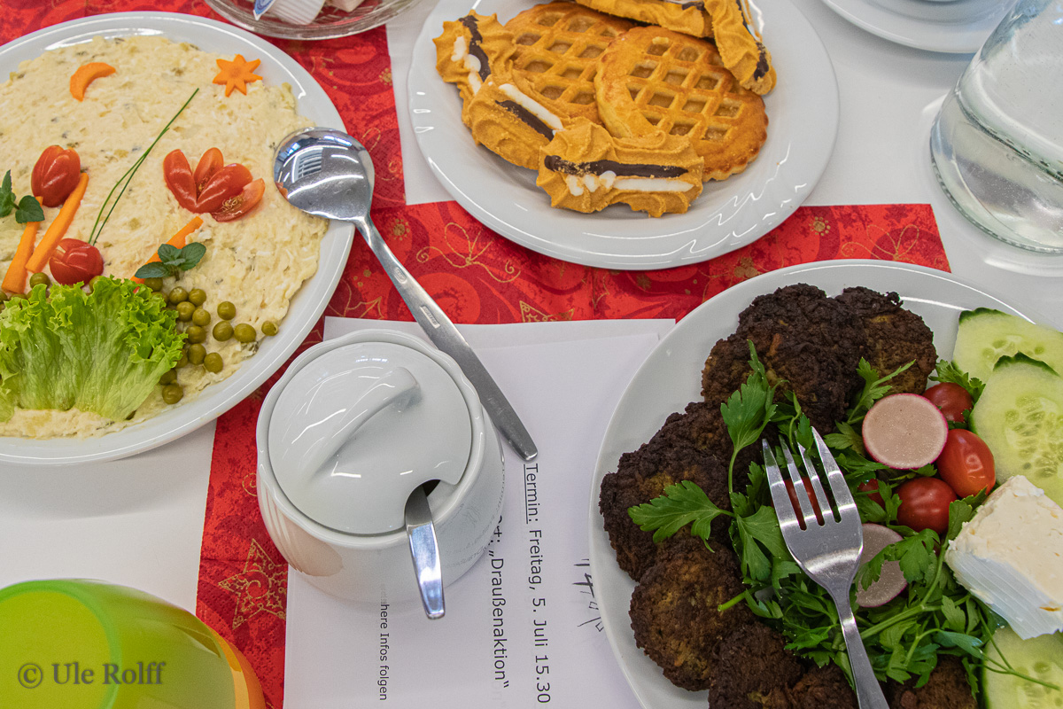 ging es zu am Freitag, 7.6. 2019, im Pfarrheim. Die afghanischen und iranischen Freunde haben für alle gekocht und gebacken, und zwar reichlich: