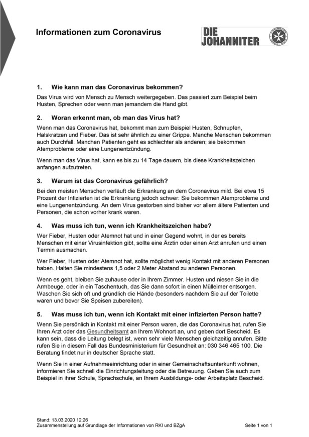 Auch DIE JOHANNITER haben Informationen veröffentlicht, wenn ihr die verkleinerte Seiten anklickt, werden sie größer.