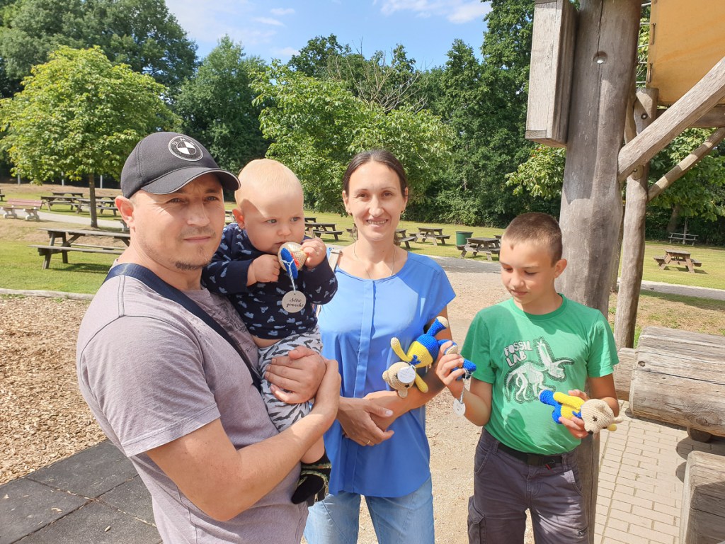 Als Überraschung für die Kinder war das Näh- und Kreativteam Heiden angereist und überreichte jedem Kind einen selbst gemachten Teddy in den Farben der ukrainischen Flagge.